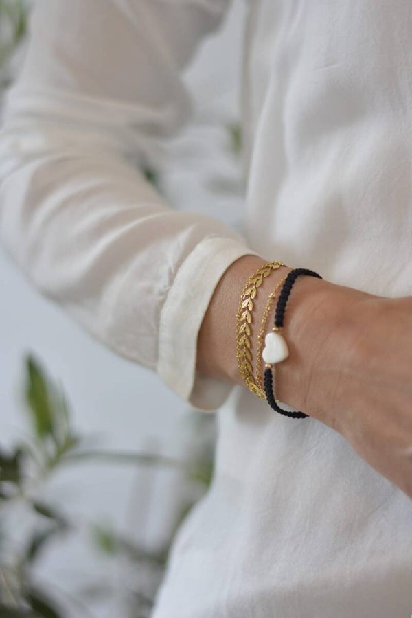 Makramee-Armband mit Perlmuttherz