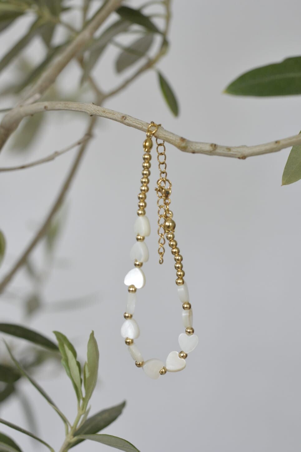 Dieses hübsche, filigrane Armkettchen wird aus Perlmuttherzen und kleinen goldenen Edelstahlperlen hergestellt. Die Vergoldung wurde durch eine Ionenplattierung aufgebracht, deshalb behalten die Perlen Ihre schöne, schimmernde goldene Farbe.