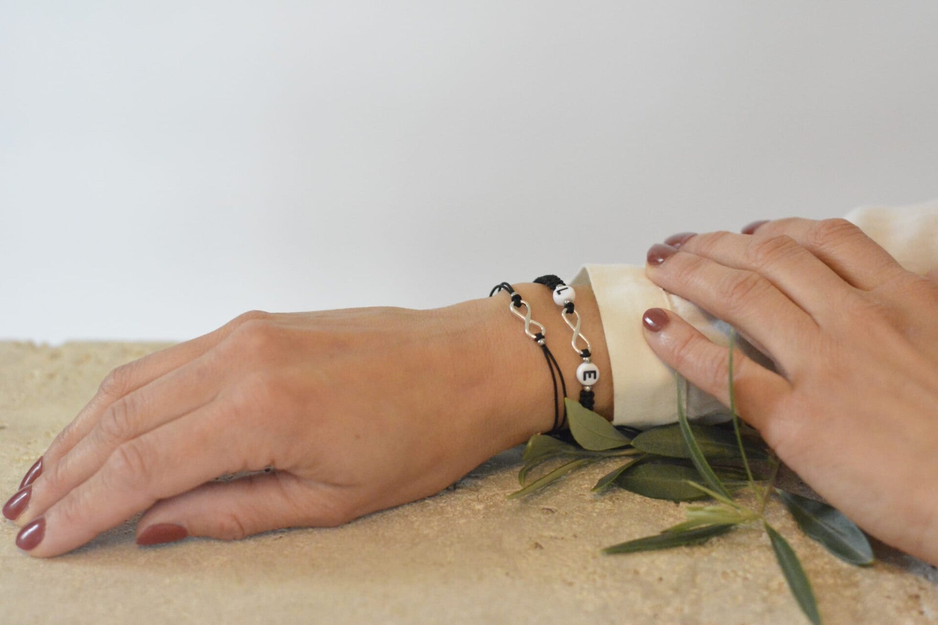 Makramee Partner-Set „Initial“ – Handgefertigte Armbänder mit Buchstaben-Perlen – Individuell anpassbar & größenverstellbar