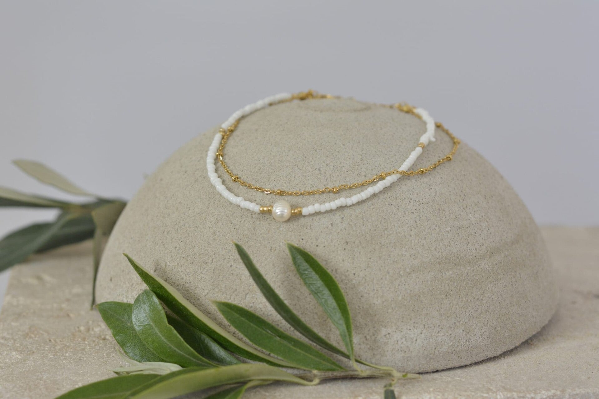 Sehr moderne Fußkette aus rostfreiem Edelstahl mit einer echten Süßwasserperle.