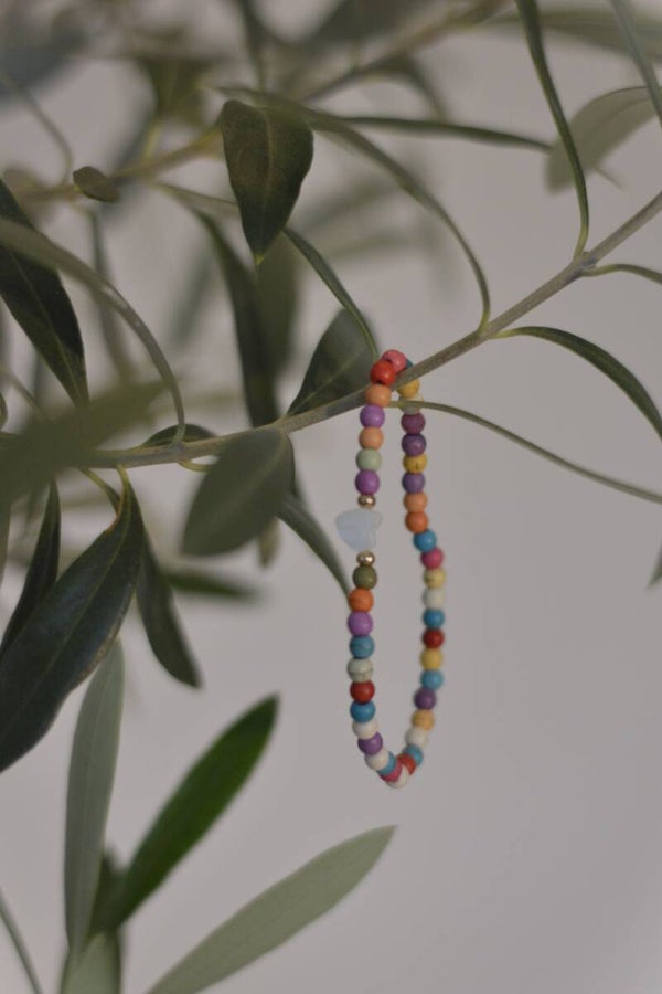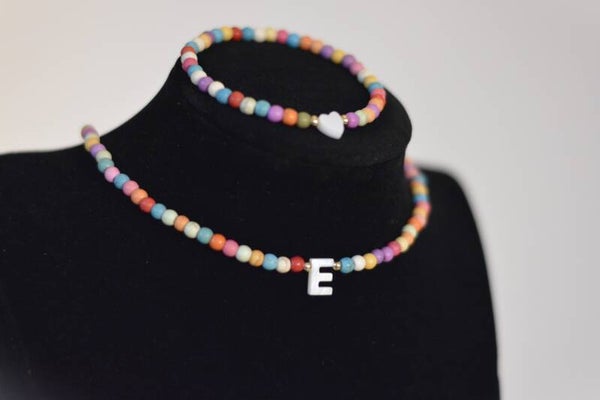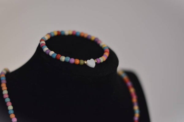 Set aus einem Armband und einer Halskette aus bunten Edelsteinperlen