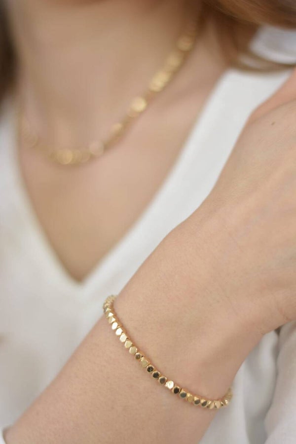 Armkette + Halskette. Die Armkette ist im Standard 16 cm lang und die Halskette 40 cm.