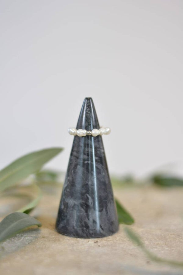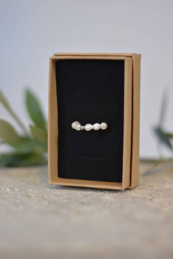 Dieser edle Ring besteht aus echten, reisförmigen Süßwasserperlen und einer vergoldeten Steinperle oder silbernen Edelstahlperle.