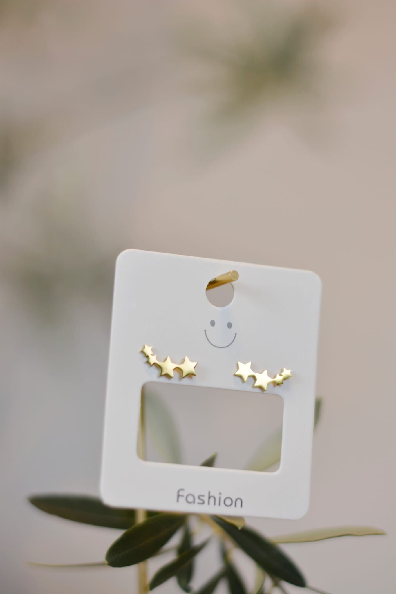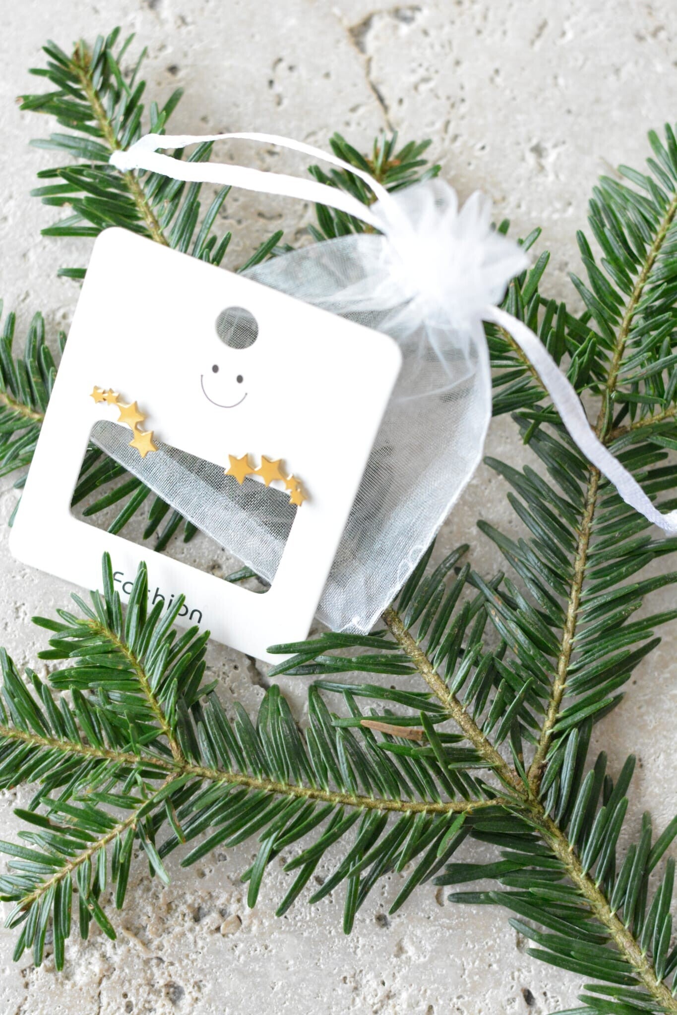 Moderne Ohrstecker mit drei zusammenhängenden Sternen.