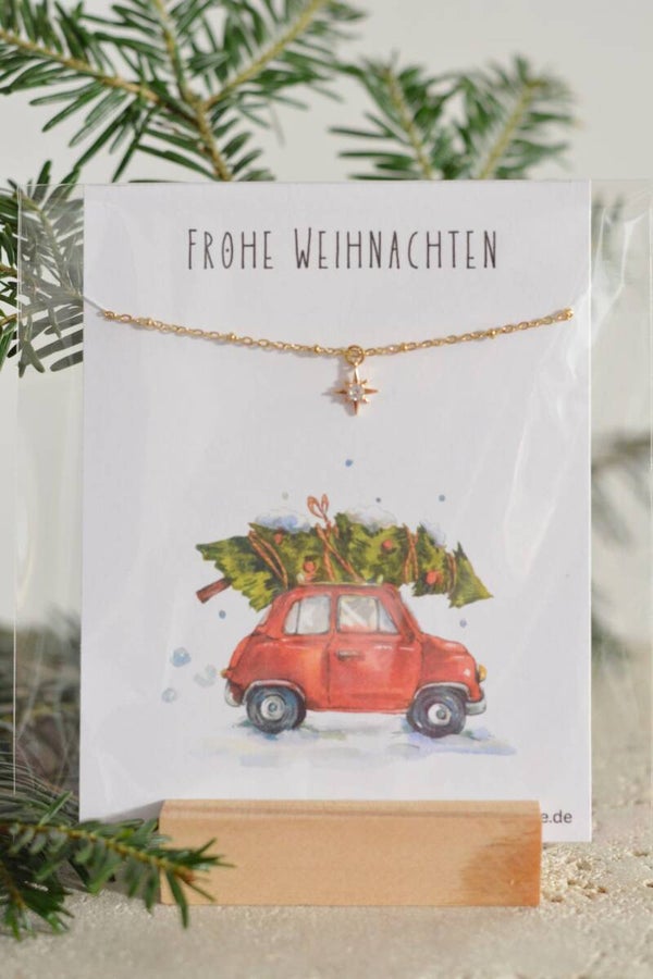 Süße Weihnachtskarte als Verpackung für ein Armband oder eine Halskette.