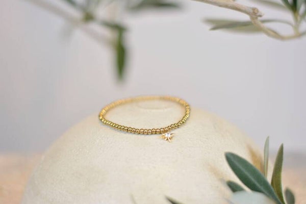 Die Armbänder bestehen aus wasserfesten vergoldeten Edelstahlperlen und facettierten Kunststoffperlen.