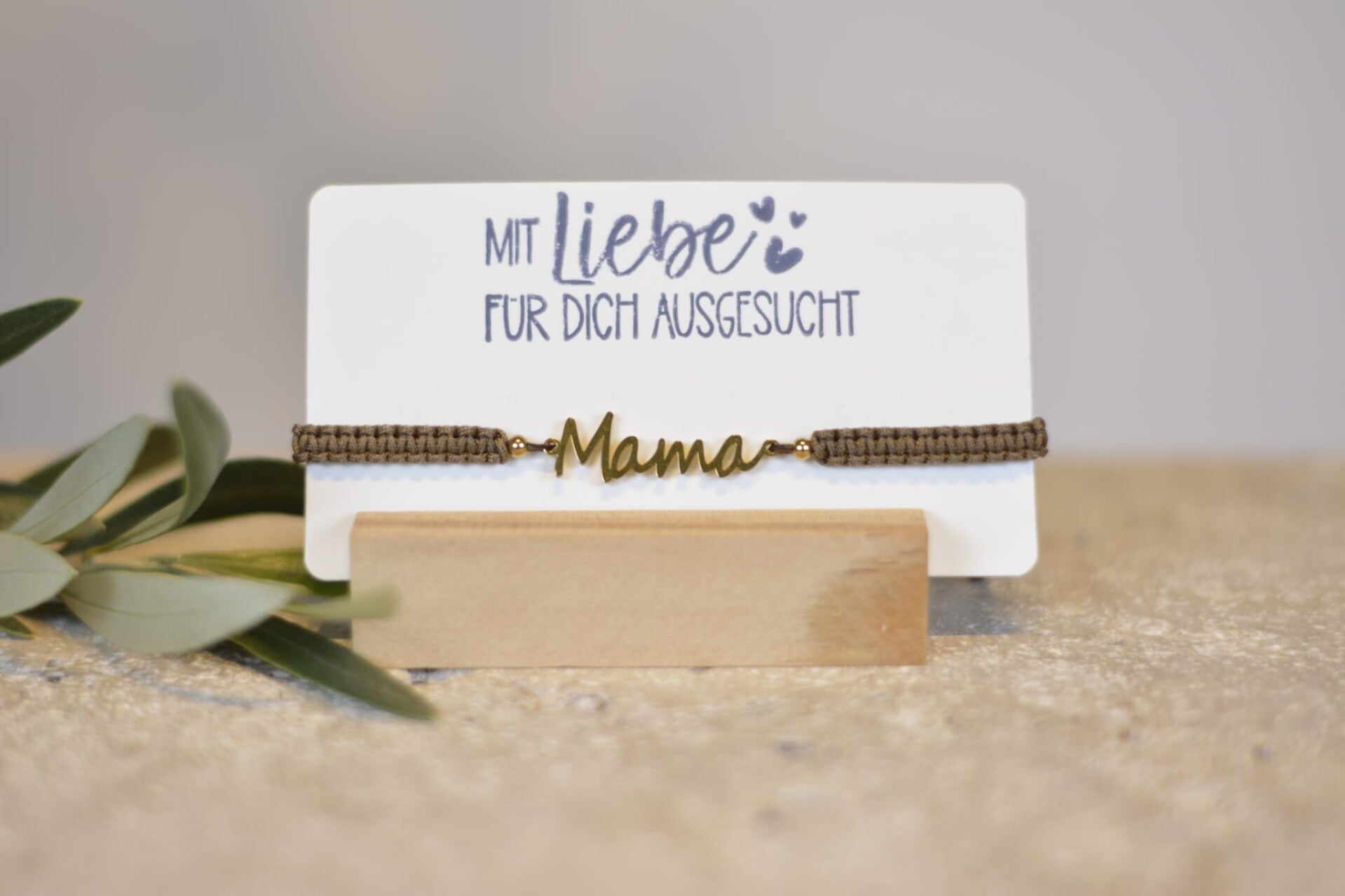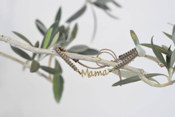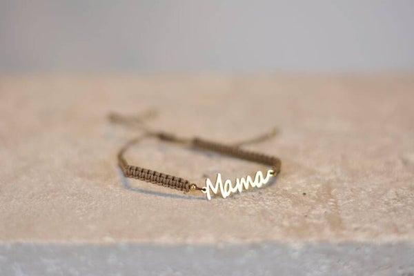 Geknotetes Armband mit einem schönen Verbinder mit dem Schriftzug 'MAMA'.